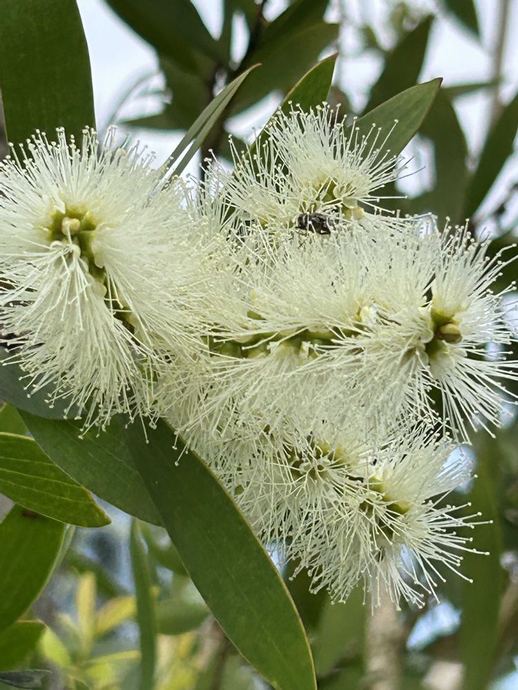 ネットで検索🔍したら、白い花「カユプテ」は花も綺麗でミツバチ🐝にも人気です。葉からは「カユプテ油」がとれアロマとして利用されたりします。♪(๑ᴖ◡ᴖ๑)♪❣️