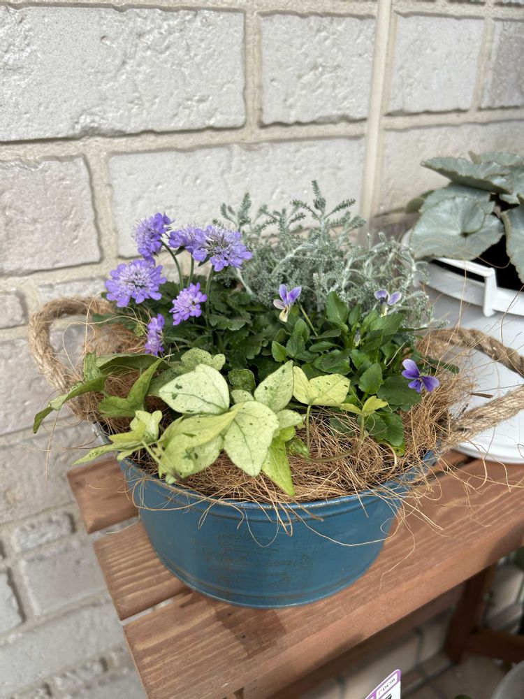 ママ友から誕プレで頂いていた鉢を使って初めての寄せ植えをしてみました😊