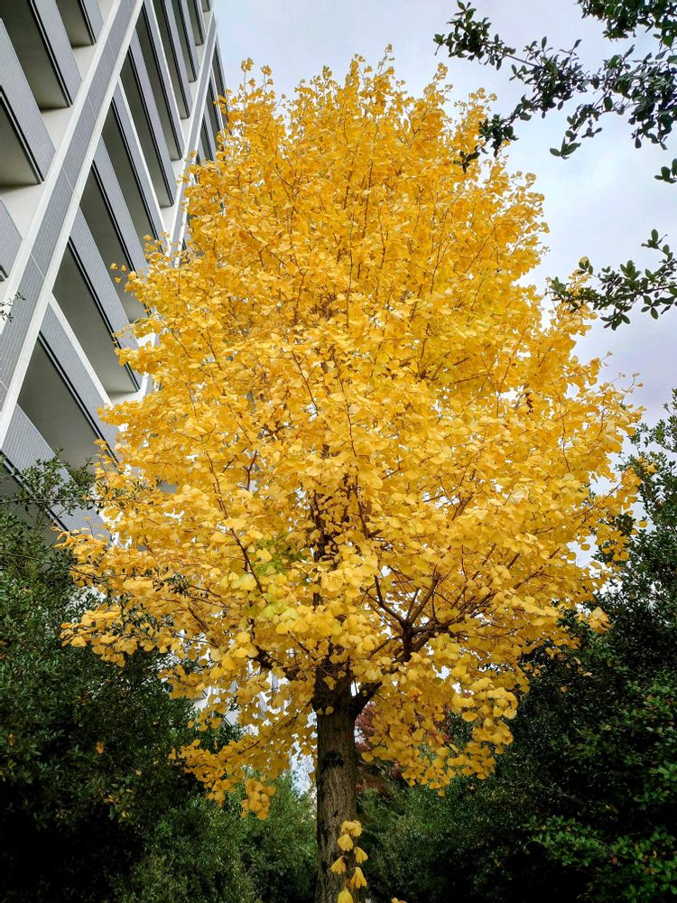 今日の午後、市内を散歩途中に見かけたイチョウ。