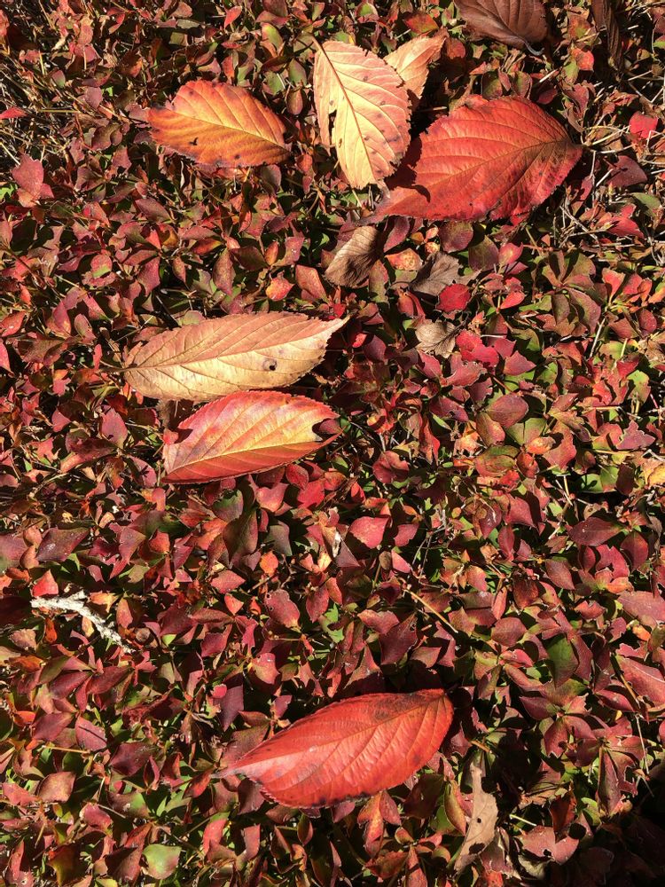 2️⃣ ドウダンツツジの紅葉の上に🍁紅葉した桜の葉が落ちて🍁綺麗な赤い色同士♥️🧡❤️😊