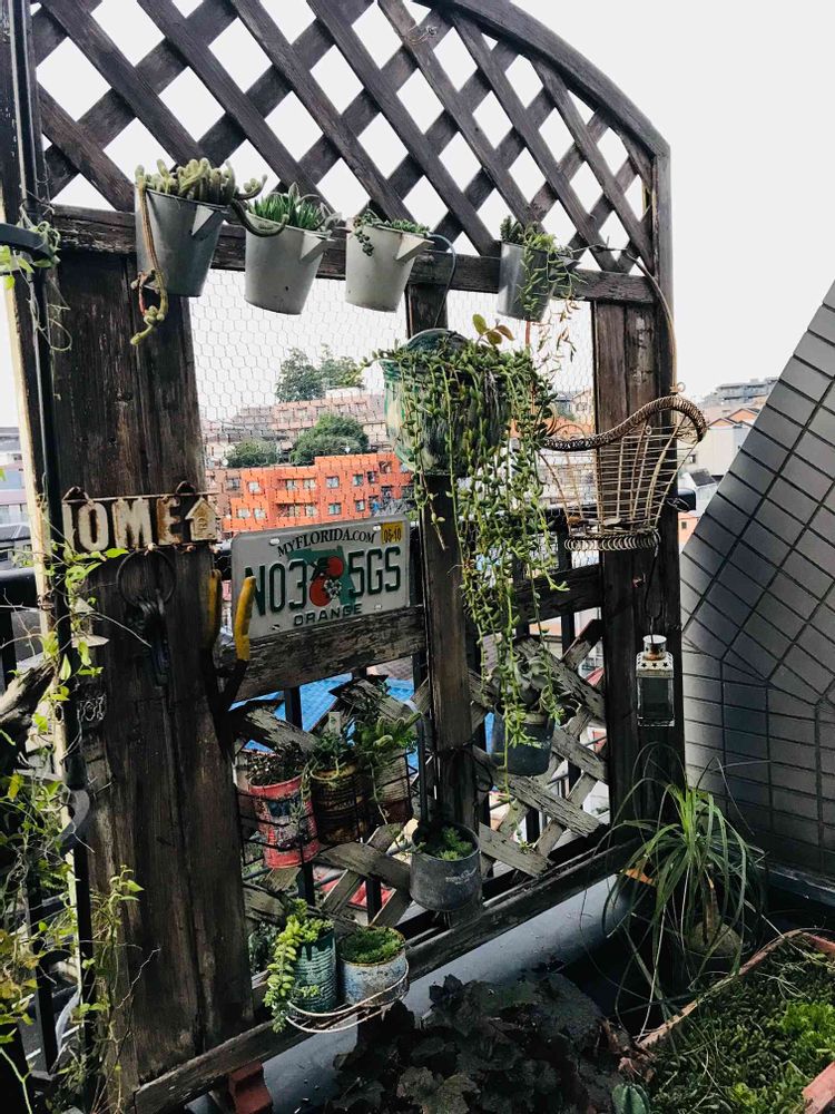 下の段に又々壊れたラティスの中身を打ち付けブラウンに塗り替えました😄良い感じー👍
