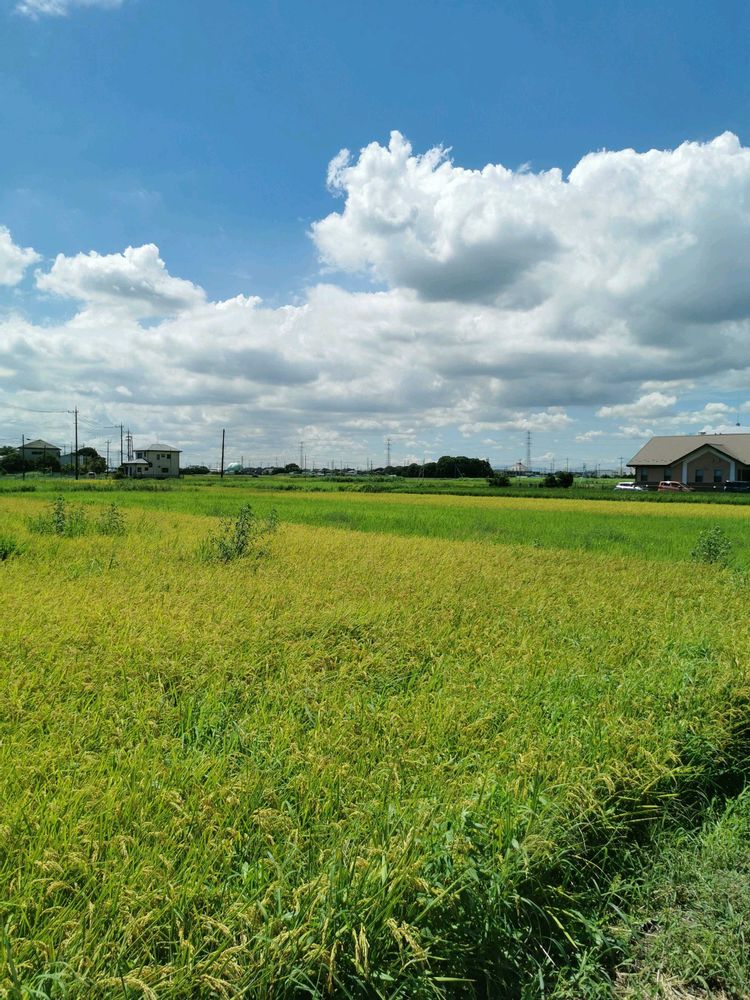 夏に実ったイネ、4枚目の田んぼアートで使われた稲は、5枚目に説明があります。