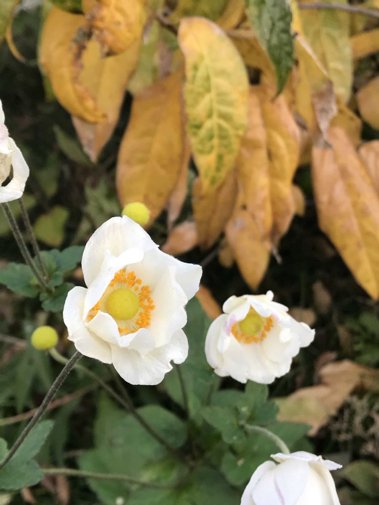 黄葉と秋明菊