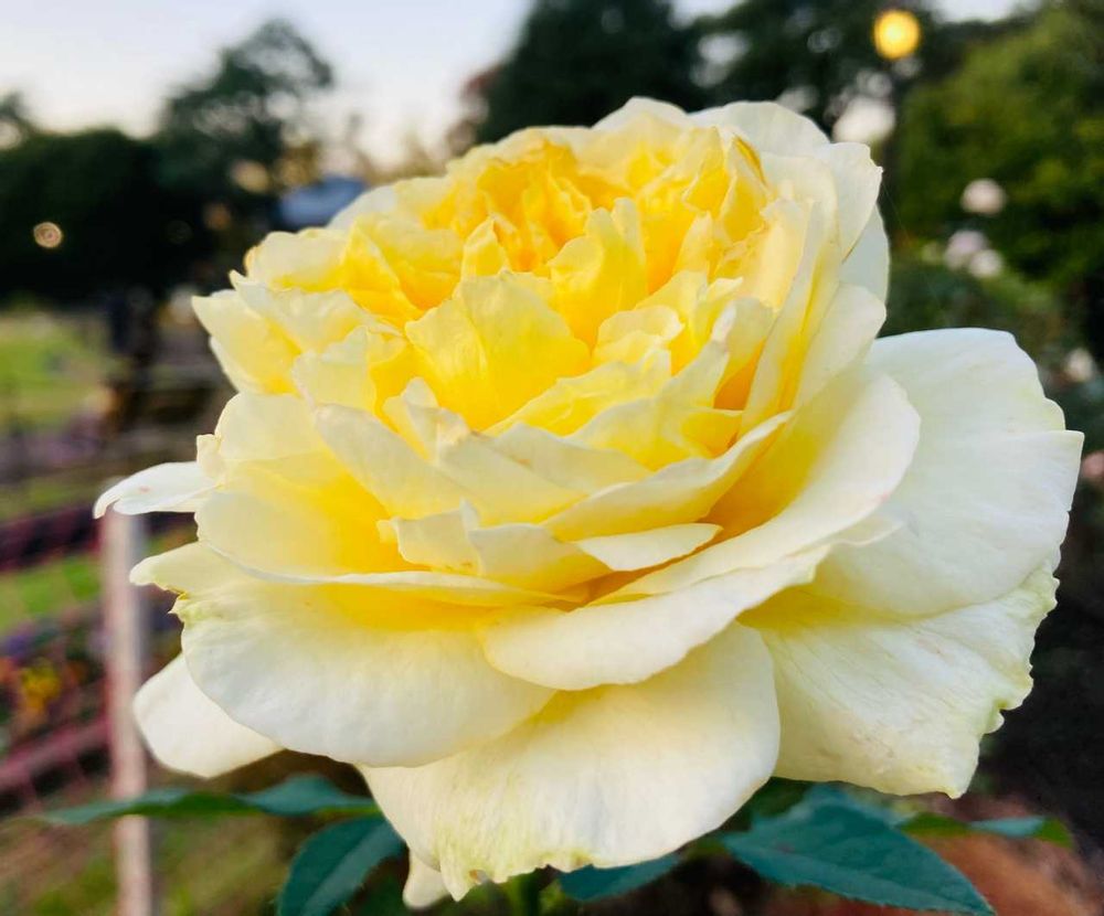 明るい黄色味がかったクリーム色の薔薇・「快挙(カイキョ)」が、寒さの増してきた晩秋の公園で、エレガントな強香を漂わせながら凛と咲いていました✨️💛☺️💛✨️