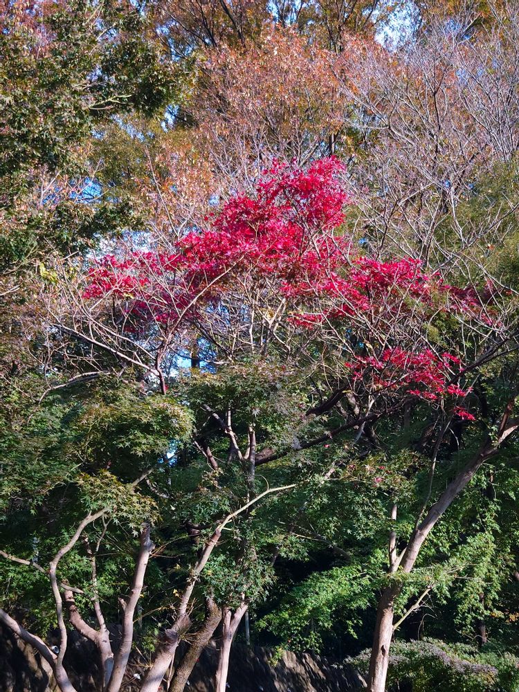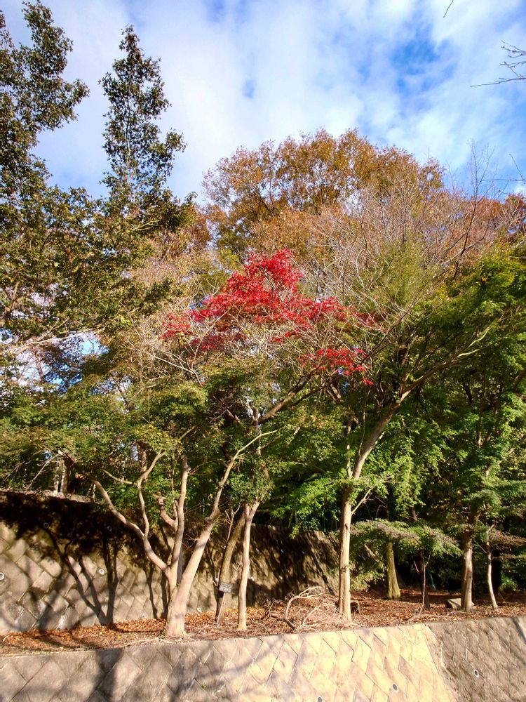 少しずつ木々の葉色が変わりつつありますが、ひときわ鮮やかな赤が目に入りました😮(1枚目)