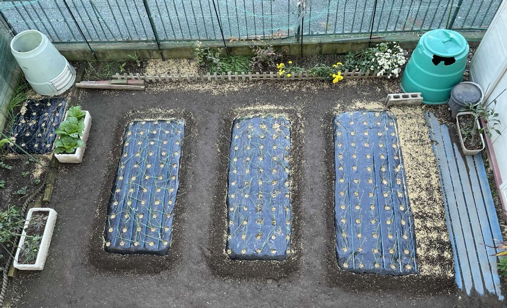 玉ねぎいろいろ取り混ぜ250本植えました🧅毎年中くらいの大きさにしかなりません😅どうしたら大きいのが取れるのかしら?