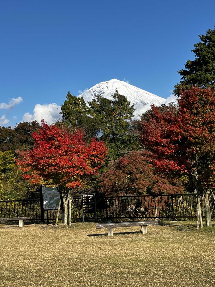 富士山も真っ白に雪化粧🤍、晴れ渡った青空💙、紅葉❤️