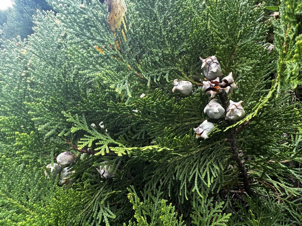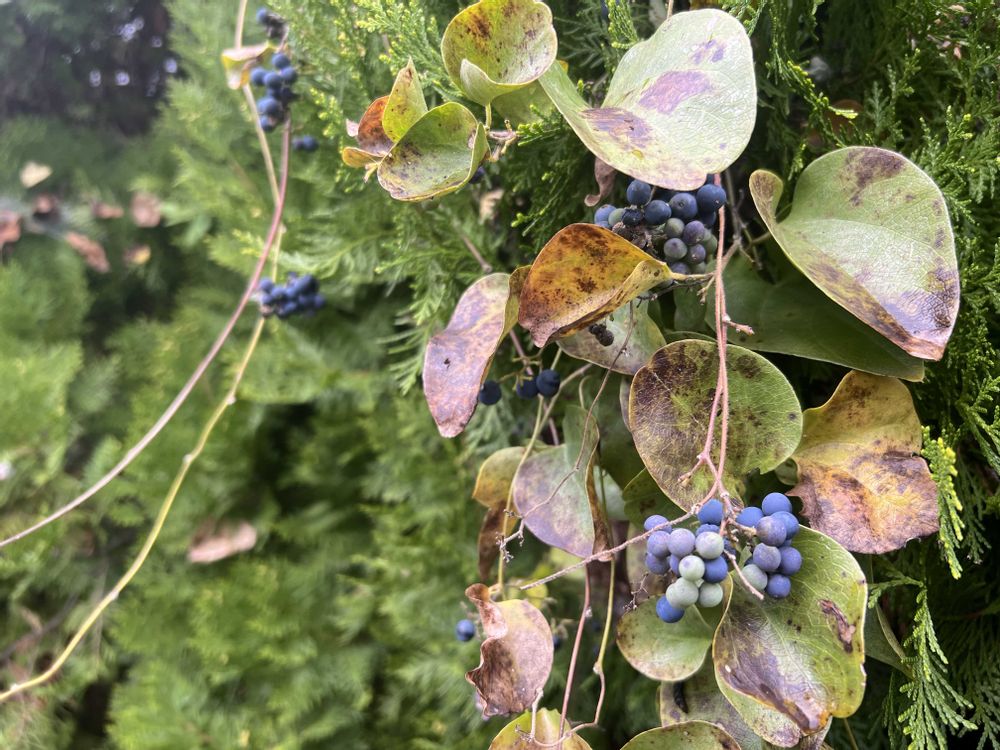 風で舞うのが目に見えるほどの花粉を飛ばして今は沢山実が成っています。