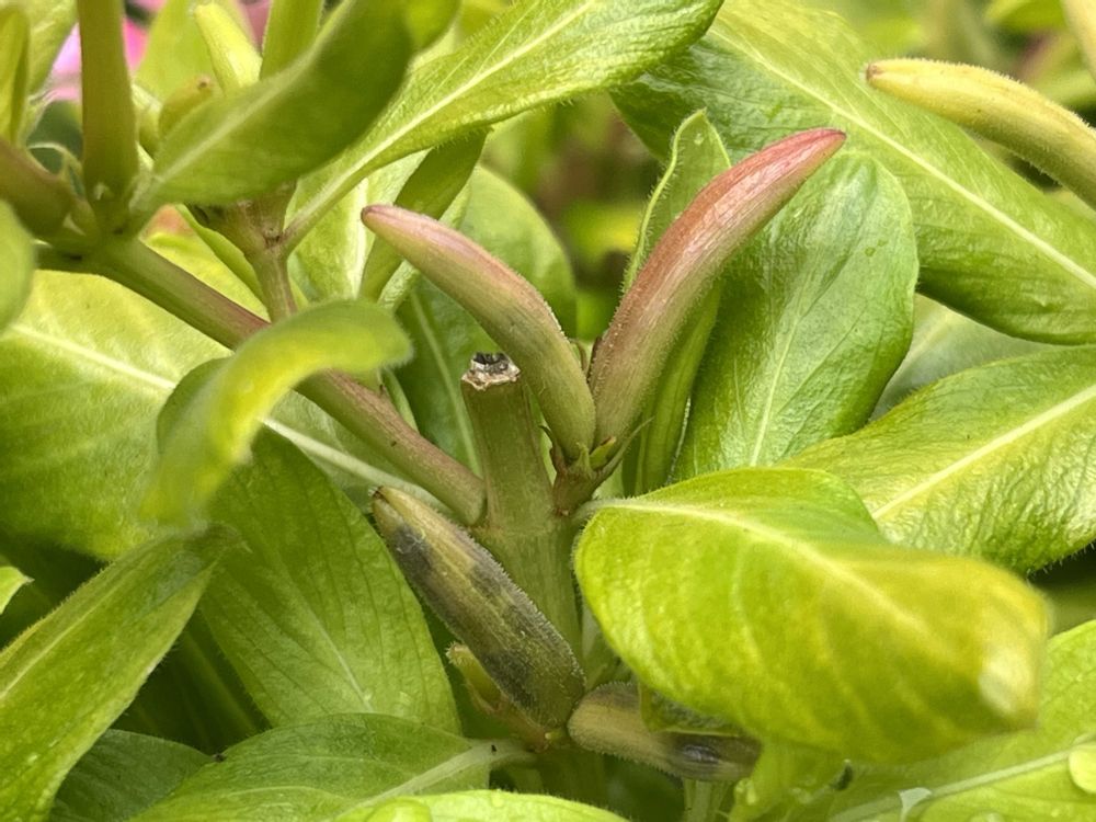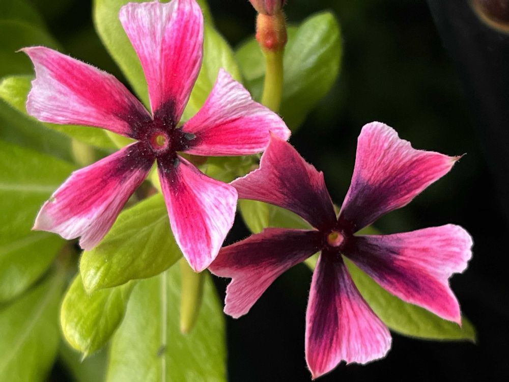 まだ、ニチニチソウが、咲いているなんて。大人色の美しさ。♥️🤍🖤♥️🤍🖤