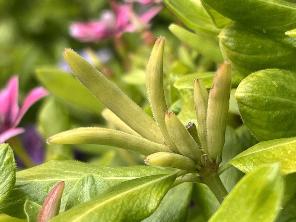ライムグリーン葉なだけに?種さやの色も薄めで中の種が透けて見えます🫘