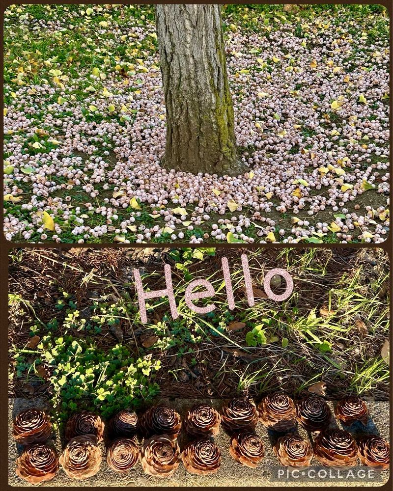 今日は強い風💦良しチャンス👍⬇️いつもの近くの公園とヒマラヤスギの元へ♡今年もお目見えシダーローズ💕まだまだたくさん落ちると思います♡誰かに大切に拾って貰いたいです🙏私はいくつかだけ持ち帰って熱湯消毒して干し始めました⬆️銀杏(雌花)が嫌というほど落ちていました♡踏まないように😅見上げたらまだまだびっしり💦でも‥自然の光景は良いですね〜(*^^*)