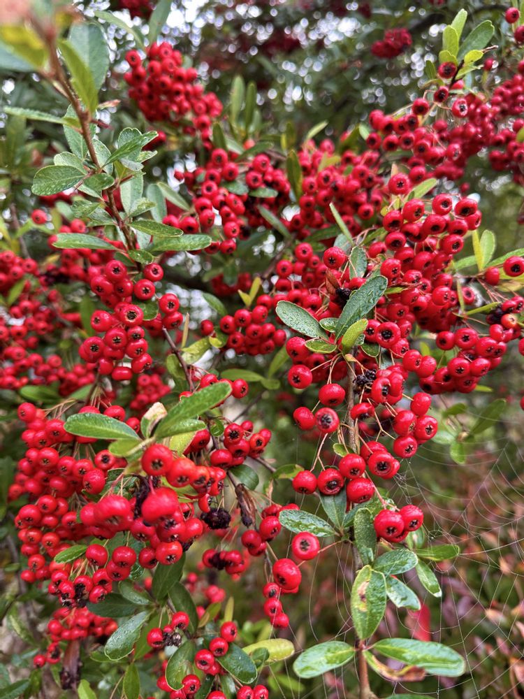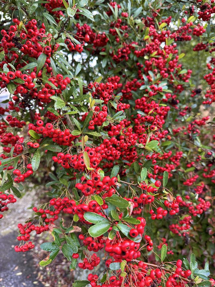 あまりにも赤が鮮やかなので、カザンデマリかとも思いましたが、葉をよく見ると、これはトキワサンザシでいいと思います🤔