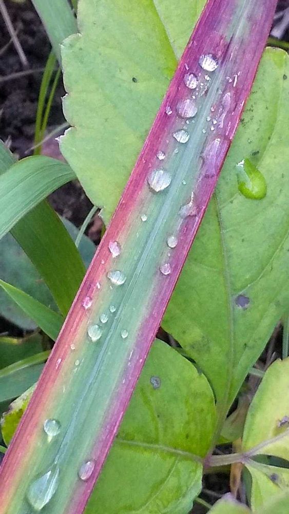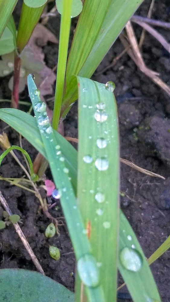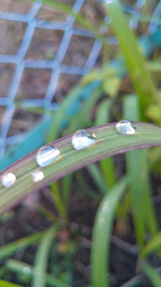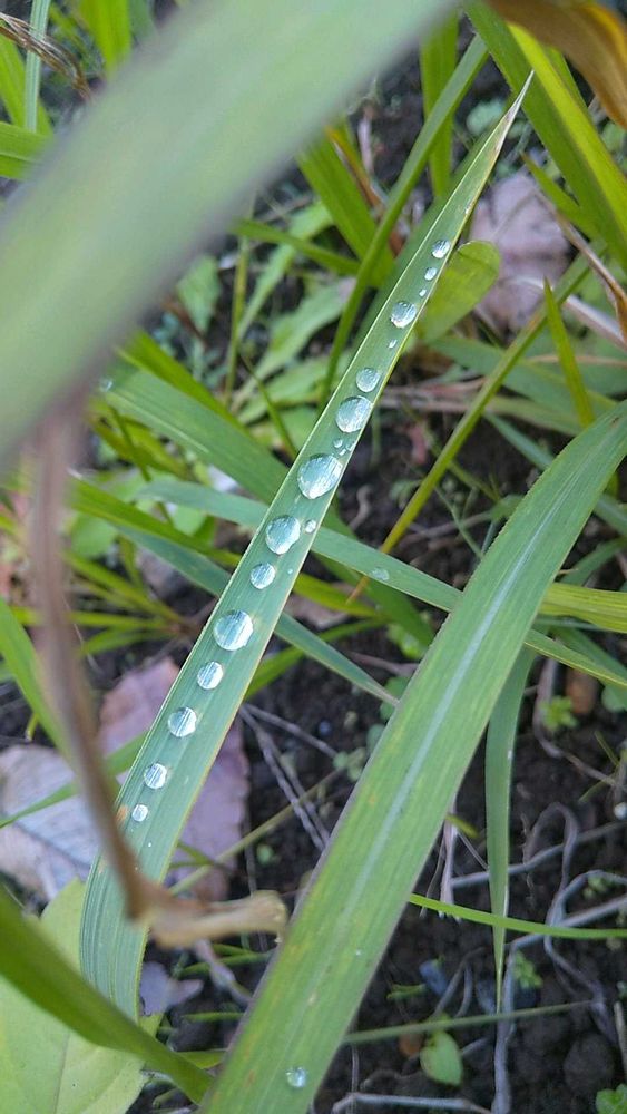 畑や畑周りの雑草の葉の上にコロコロ水の玉が乗っていて♥️🔷💛キラキラ輝いて綺麗!感動でした。