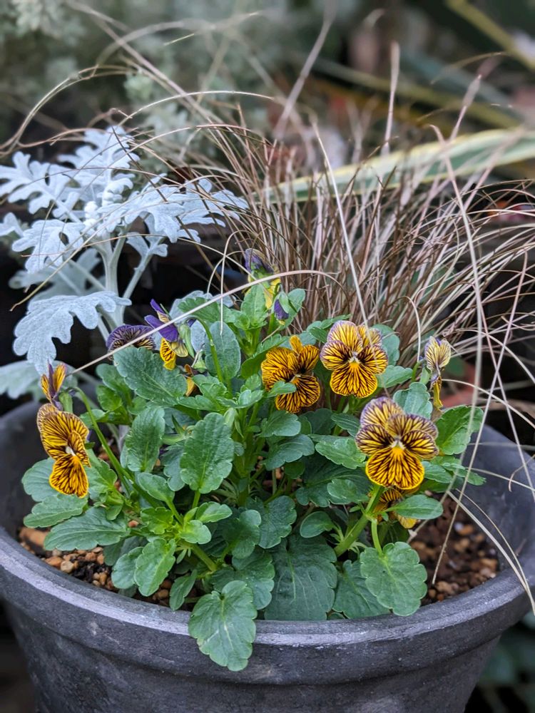 4枚目…寄せ植えꉂ😊タイガー🐯アイ👁の後ろって紫💜なのね( *´艸`)