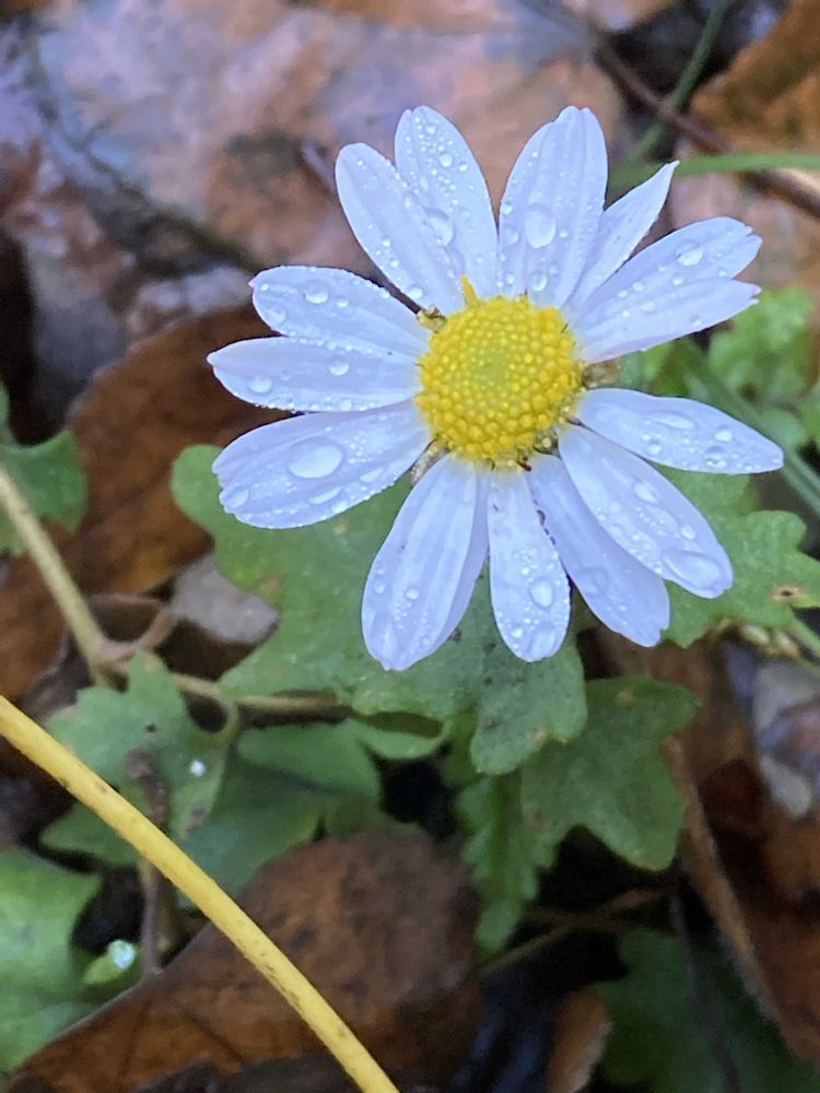 このリュウノウギクは朝方の雨で花弁が濡れていました。葉っぱに鼻を近づけると良い匂いがしました😊。