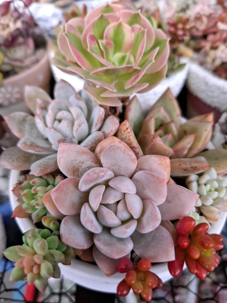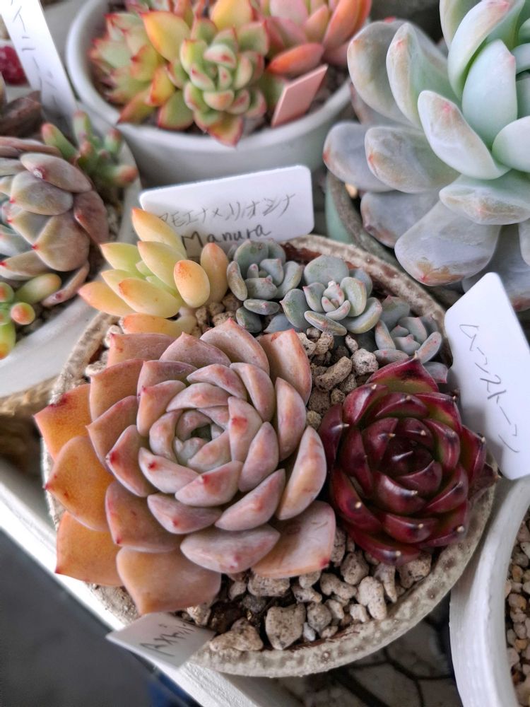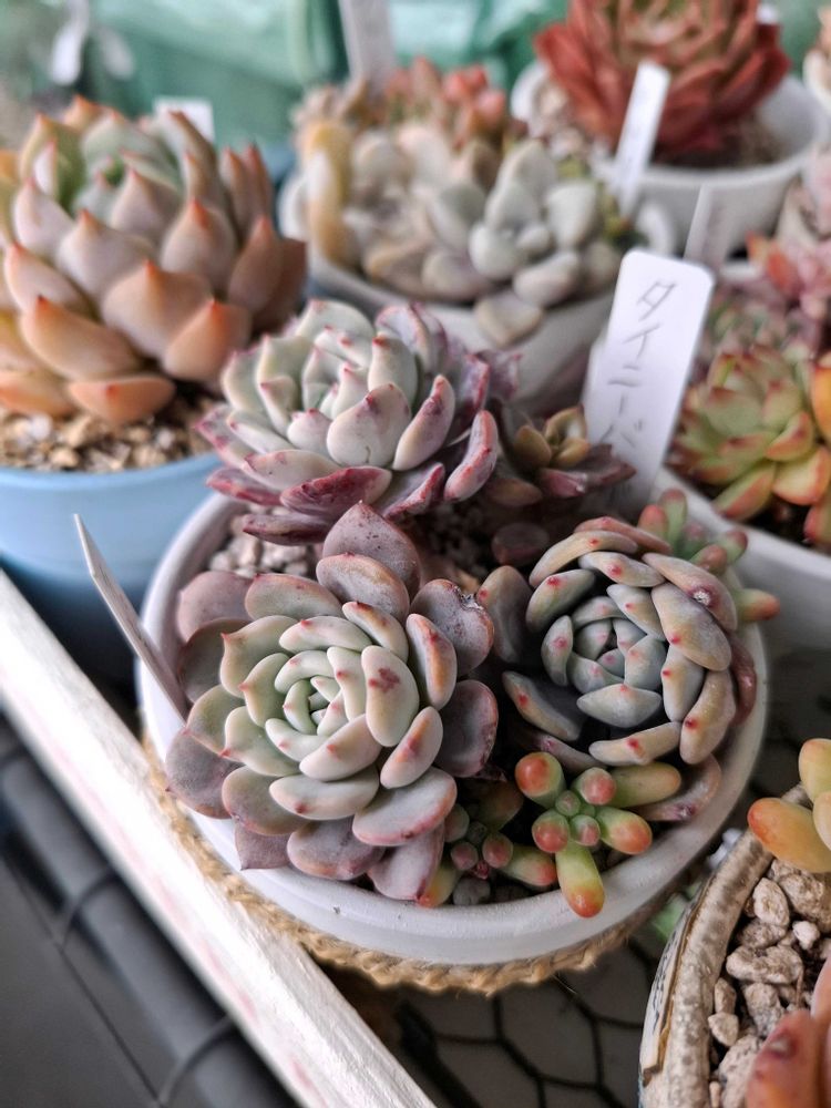 小さな鉢に作った寄せ植えと、まだみどりんの寄せ植えでせす☺️少しずつ色づいてきました❗💓