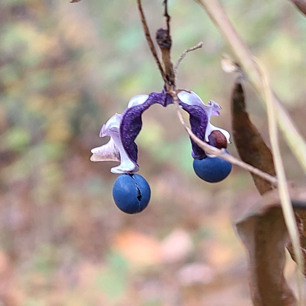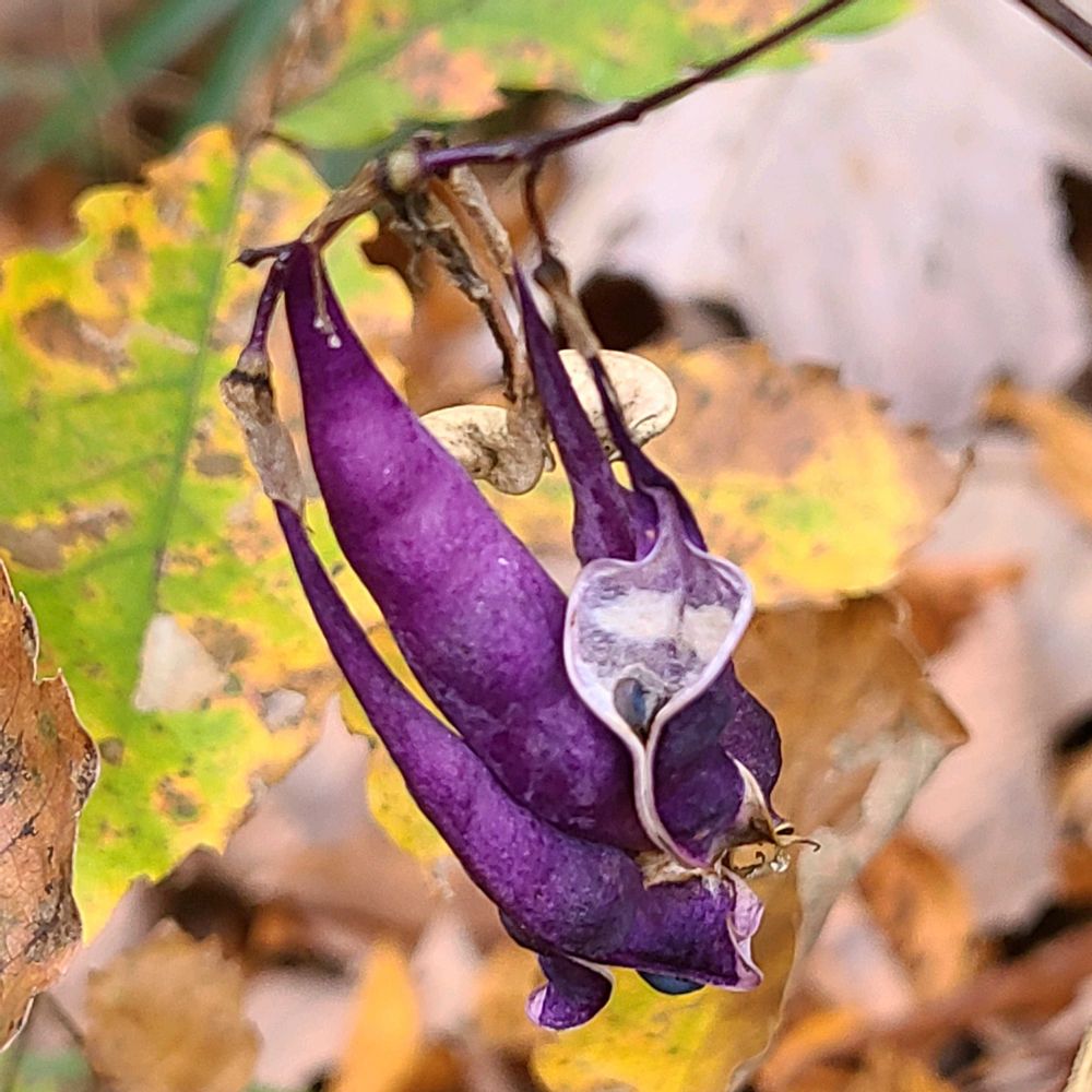 紫色の鞘にブルーのノササゲの実、とてもとても可愛いですね😍