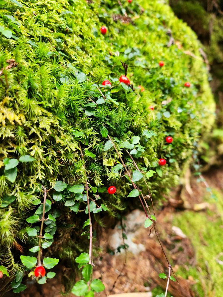 緑の絨毯の上で 艶かやな赤い実♥️💚