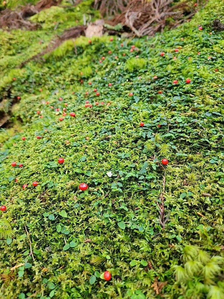 緑の絨毯の上でキラキラしてる赤い実が素敵ですね💓