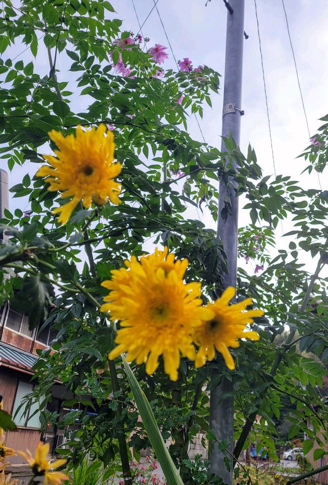 皇帝ダリアの下に春に芽🌱が出て来た菊を挿し木したのも