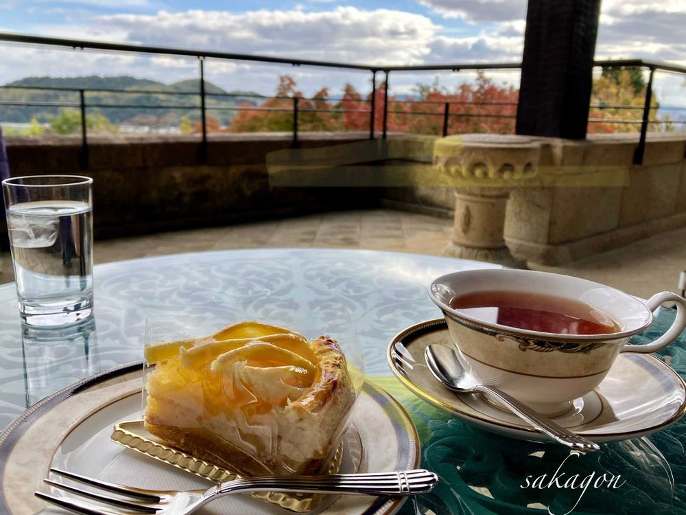 4️⃣テラスでひとりティータイム。☕️🫖遠くに見えるのは奈良の山々。直接距離だと意外と近いかも。
