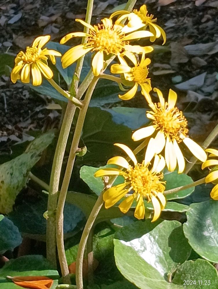 木漏れ日の中、ツワブキがひっそりと咲いていました。❀.*・゚❀.*・゚❀.*・゚❀.*・゚❀.*・゚