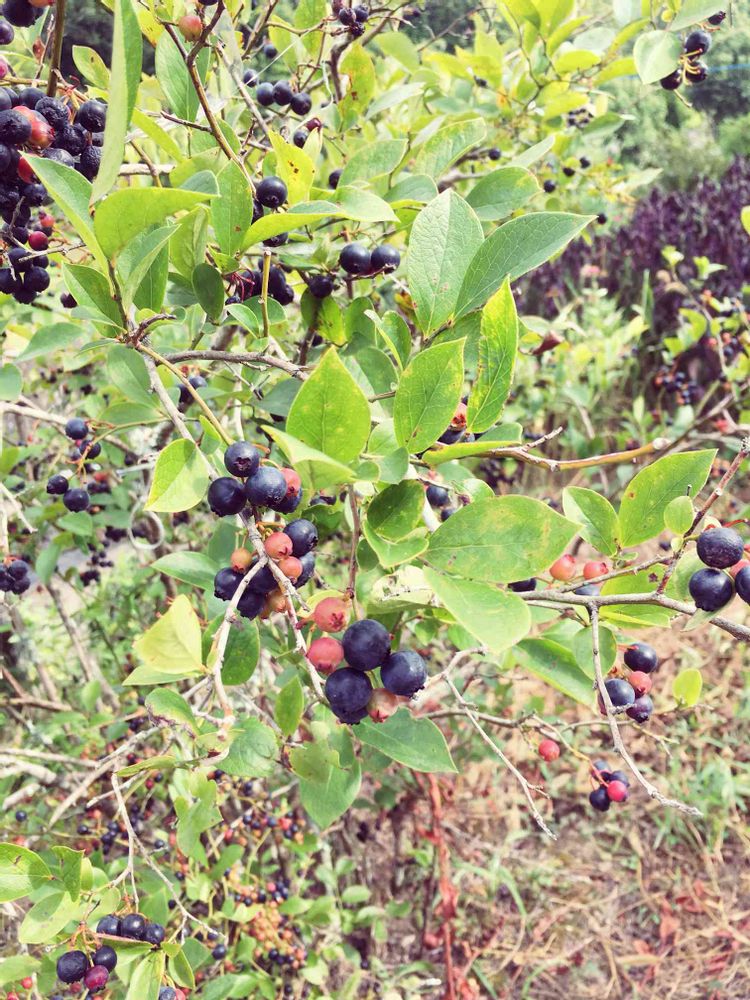 義母とブルーベリーの収穫。たった2本なのにたわわに実った実を採るのは大変でした。