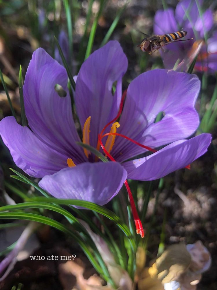 後ろのサフランが「あたしを食べたのは誰?あんた?」