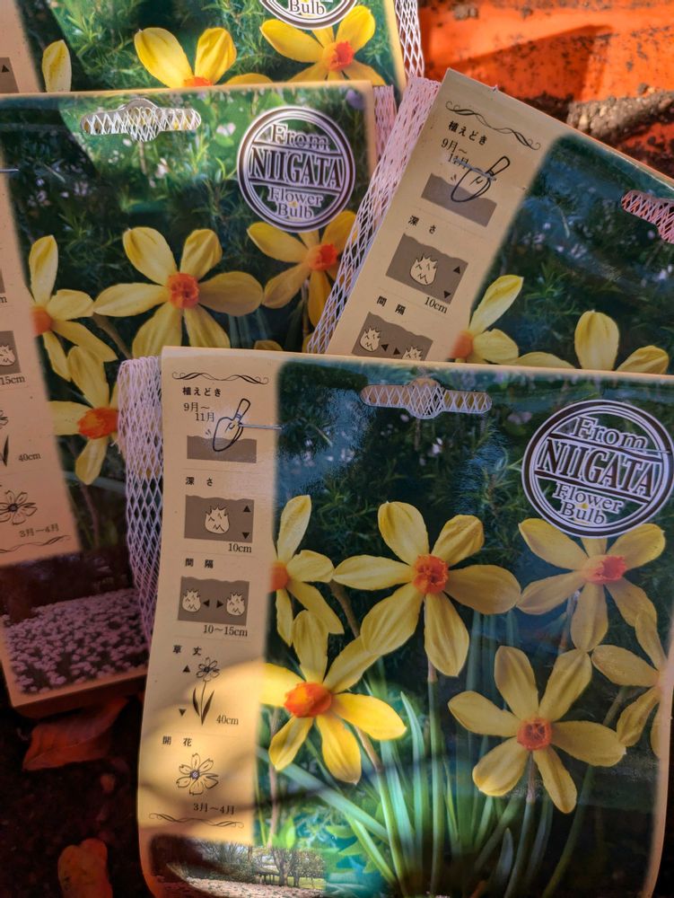 何も買わずに帰ろうとしたら、お買い得水仙が、一袋198円、全部買い占めて帰ってきました。