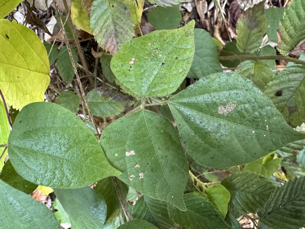毛深いタンキリマメに対して、ずっと毛は薄く、葉の先端が尾状に尖った広卵形で、葉質が薄いのが特徴です🧐