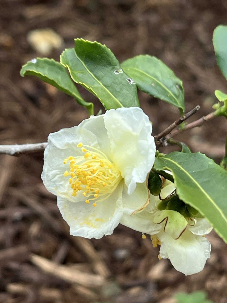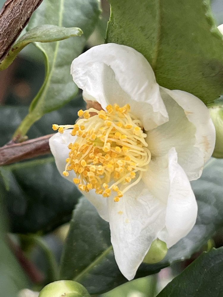 4,5枚目 宇治川沿いのスタバに咲いてたお茶の木の花🤍🤍🤍💚