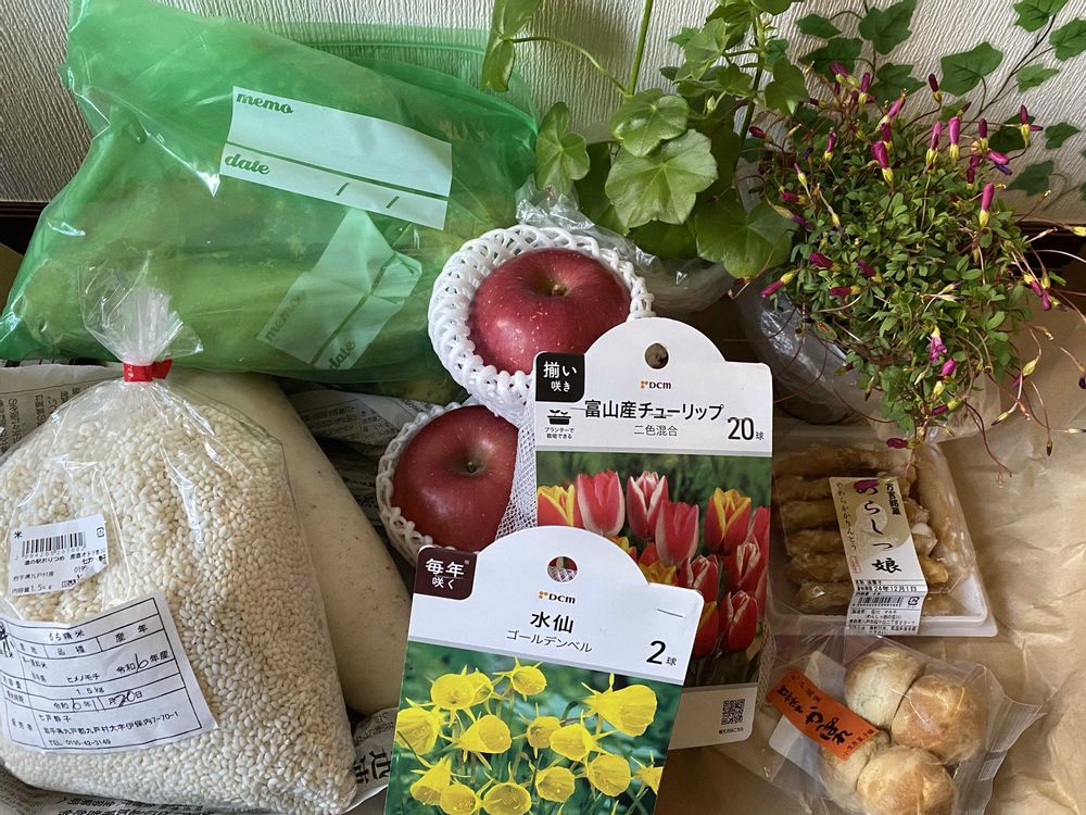 2枚目はもう2年になりる東北の花友さんからお母様手作りの沢庵、お義父様のじゃがいも、沢山送ってもらいました❣️