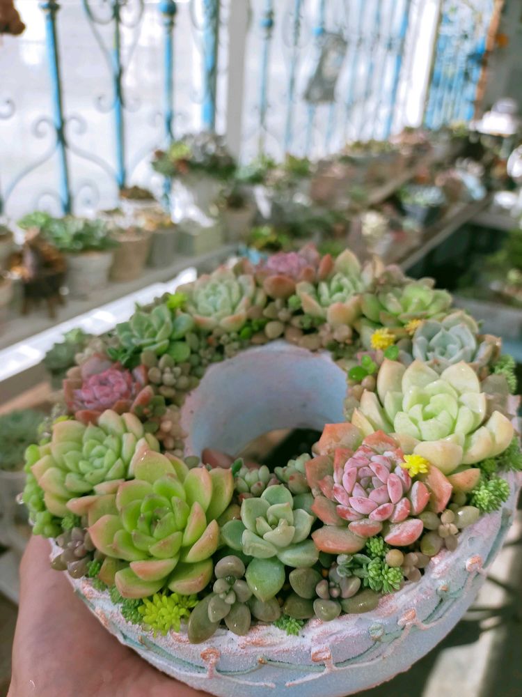 手作りのリース鉢✨寄せ植えも素敵ですね✨(*^^*)