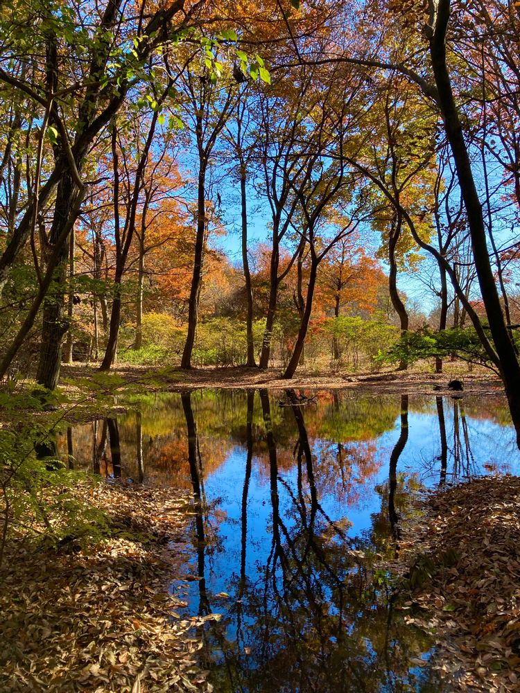 小さな池越しに綺麗に写って😍最高⤴️💕🍁✨🍁✨🍁✨