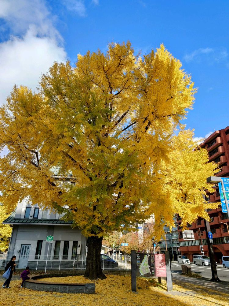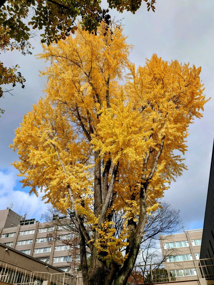今日の午前、市内を散歩途中に見かけたイチョウ。