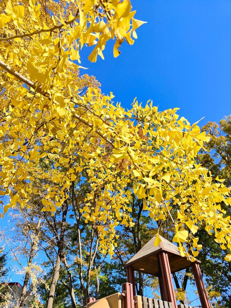 銀杏の葉の黄色と青空、初冬って感じですね〜☺️