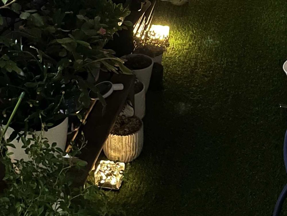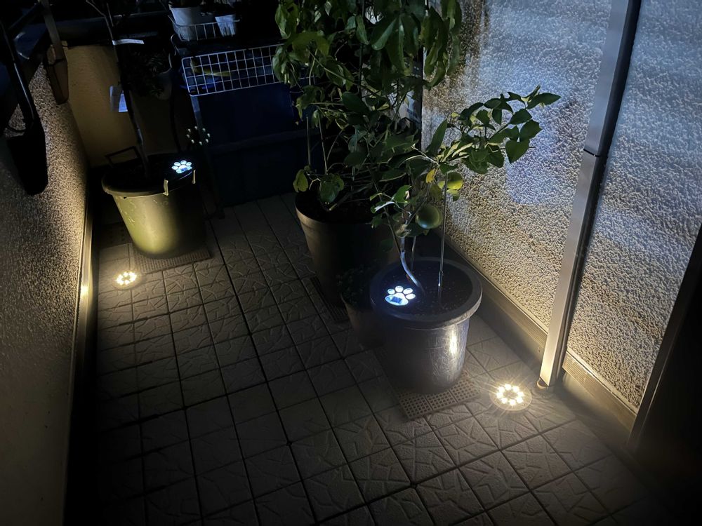 レモンの鉢の猫の肉球と床置きしたソーラーライトは意外ともちます。