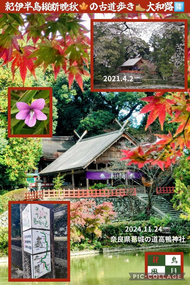 風の森の🚏から歩いて10分ほどで高鴨神社へ。全国にかる鴨(加茂)神社の総本宮にあたる。その名の由来でもある冬🐦️の鴨が数十羽池を泳いでいた。ここは🍁の名所でもあるが🌸の時期には桜吹雪が池に舞い降りて作る花筏は絶景のひとこと。まさしく絵になる、映えるスポット。