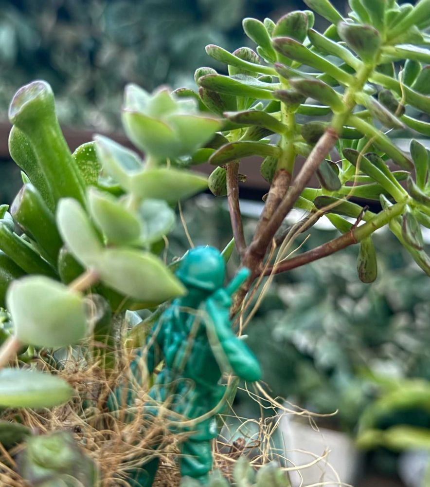 うちの寄せ植えにはいろんなところにいるグリーンアーミーメン