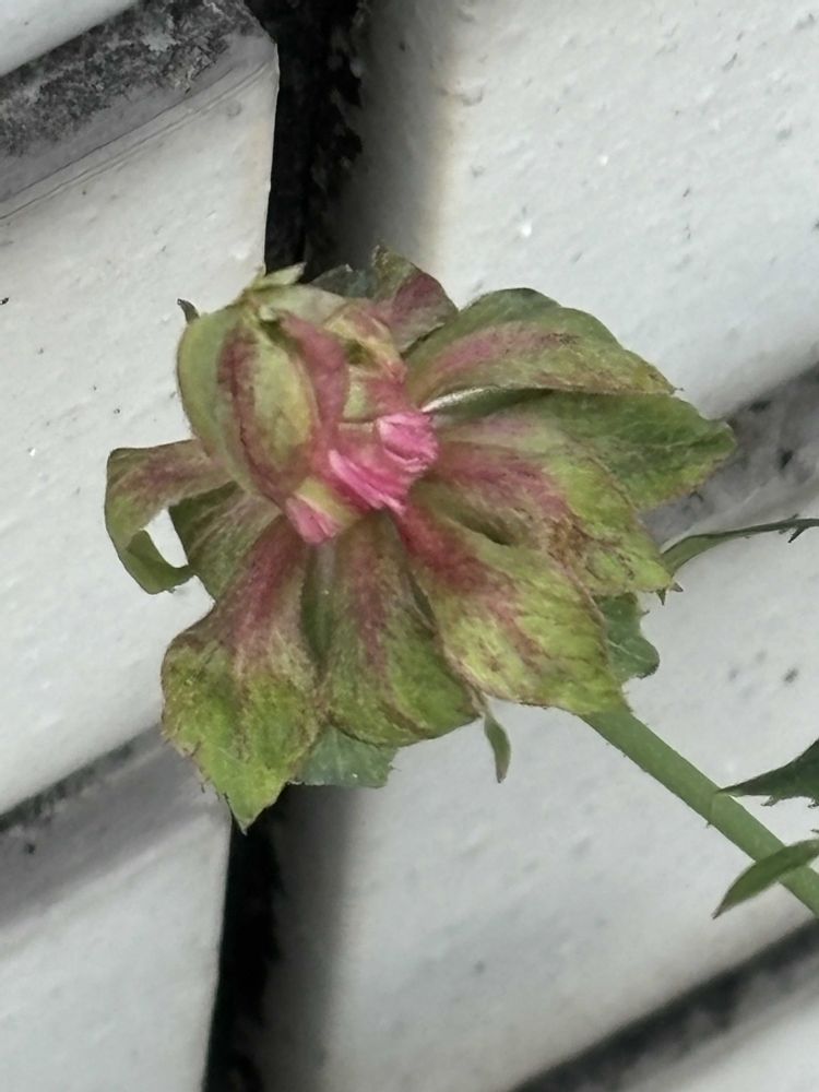 花びらが葉に変化した変わり咲きの四季咲きオールドローズということですが やっぱり「お花なのよっ🩷」ってアピールしているようで(ღ*ˇ ˇ*)。o☆ˢᵘᵗᵉᵏⁱ✧˖°🩷💚