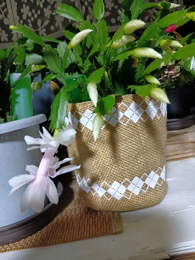 今年の2月にお迎えしたものですが、その時同じ鉢カバーが付いていたので、お仲間のお花だー♡と嬉しくなりました🤗