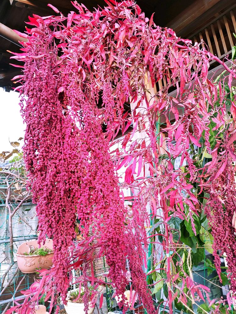 芽が出て🌱大きく(2メートルぐらいに)なっても地味な花ですが、寒くなると鮮やかなピンク色が「私を見て〰️」と言ってるようで大好きな花なんです。