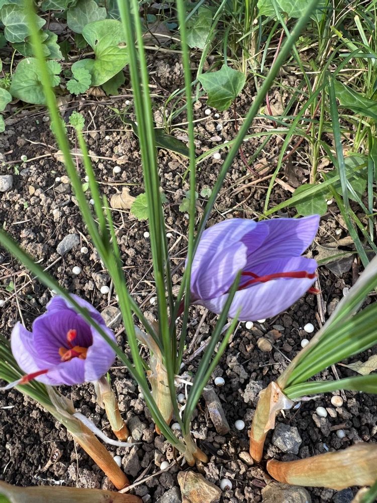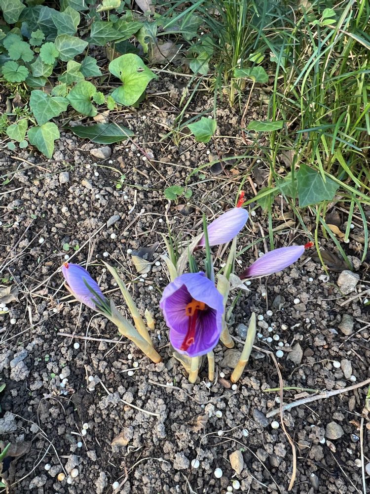 17年目のサフラン、はじめは球根3個学童クラブで頂いて、放ったらかしで増えました😁