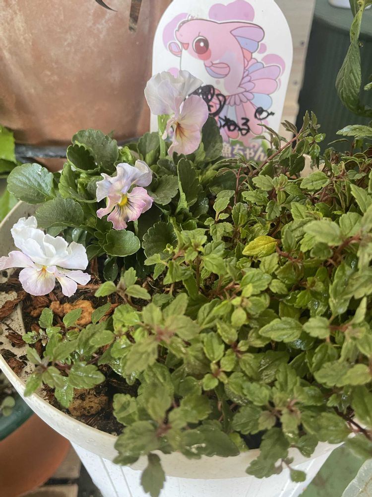 春色のかわいいビオラ達は、3年目のオレアリアやかわいいカルーナと寄せ植えに🩷💛