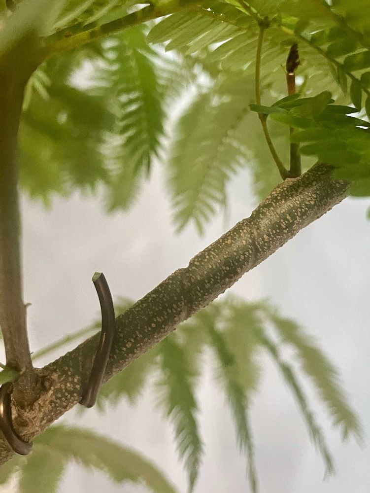 根本はそうでもないが、枝先は固定用にぐるぐる巻いていたアルミ線の跡が少し残ってしまった。緩めにしたつもりでも、それくらい育ってくれたと思うと感慨深い。