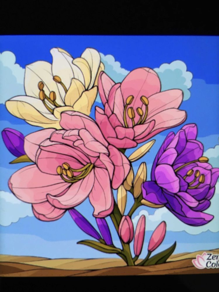 ①風で倒れそうなので切り花に! ②少〜し紅葉し始めた薄氷 ③アプリの塗り絵