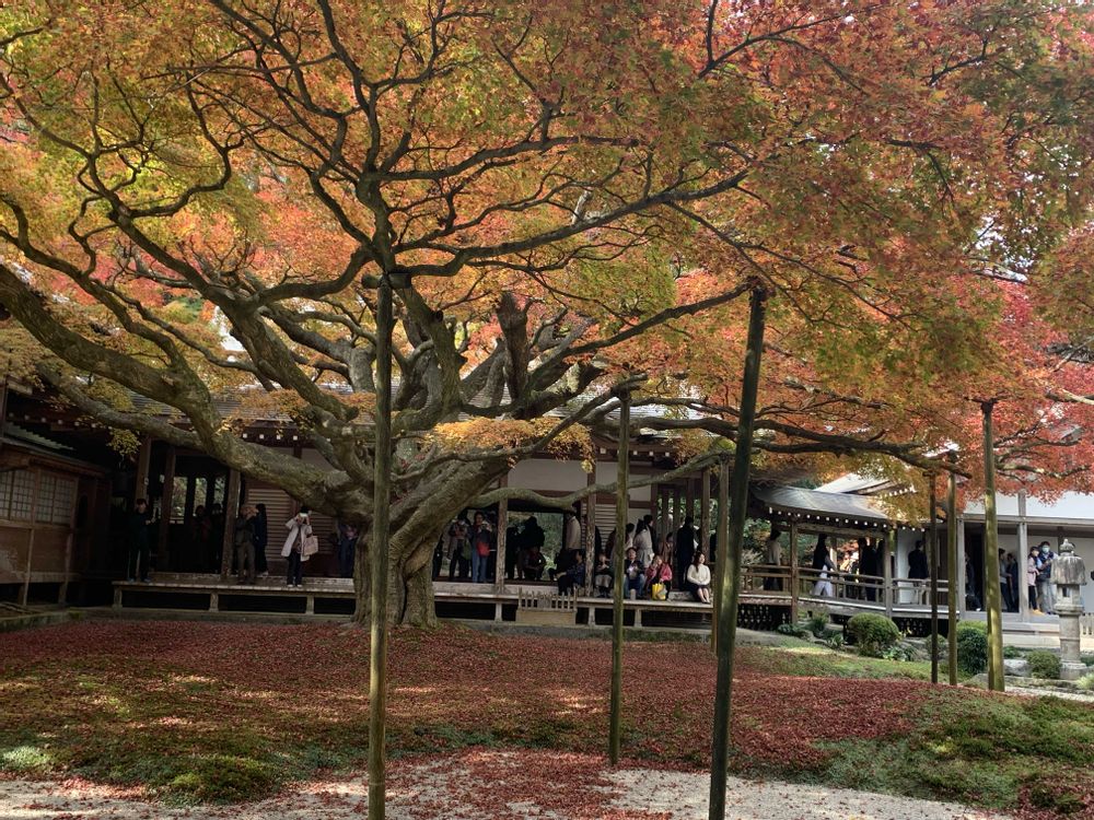 大きな🍁科の紅葉の木の下沢山の紅葉が落ちていて、、今は沢山の人が眺めに来られて有りました〜!包み込む様な姿に感動しました〜!(╹◡╹)♡