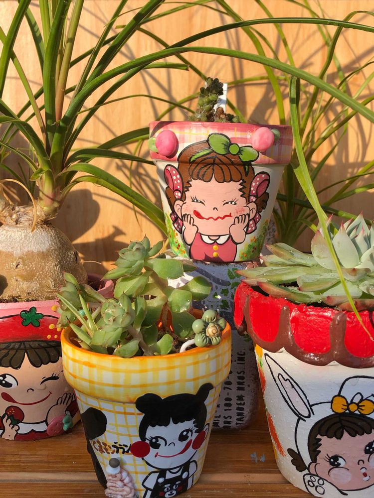 トワちゃんみたりんちゃんから頂いた繋がりのペコちゃんリメ鉢❤️で参加します🙋♀️