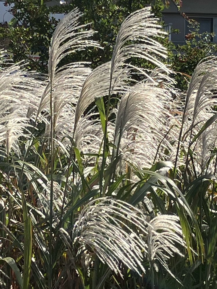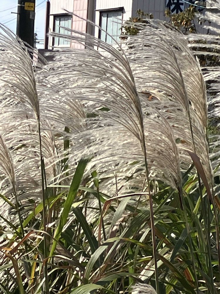 基毛が白銀色のオギが風に揺れていました。😊😊