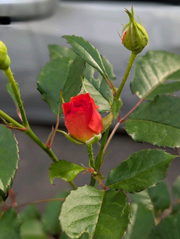 葉っぱ🍃もツヤツヤ蕾ももう少しで咲きそう👍💕🌹